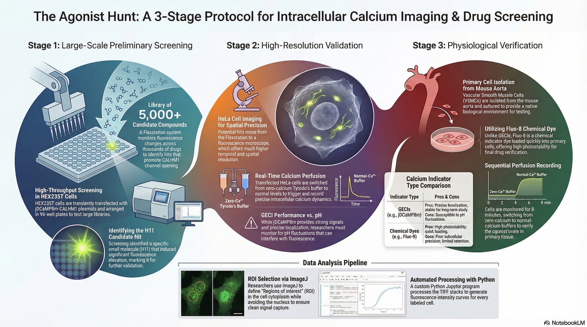 钙成像技术通过可视化钙离子浓度的动态变化,为药物筛选提供了直观且高通量的解决方案 。本文介绍的protocol通过整合基因编码钙指示剂 (GECIs) 与化学染料,构建了从大规模初筛到精确验证的完整工作流 。